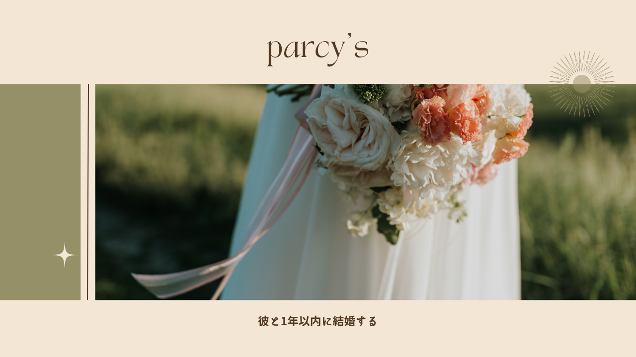 parcy’s診断は、国内No.1会員数4万人を超える恋愛・結婚のパーソナルトレーニングスタジオ、parcy’sが提供する超精密な結婚力診断テストです。